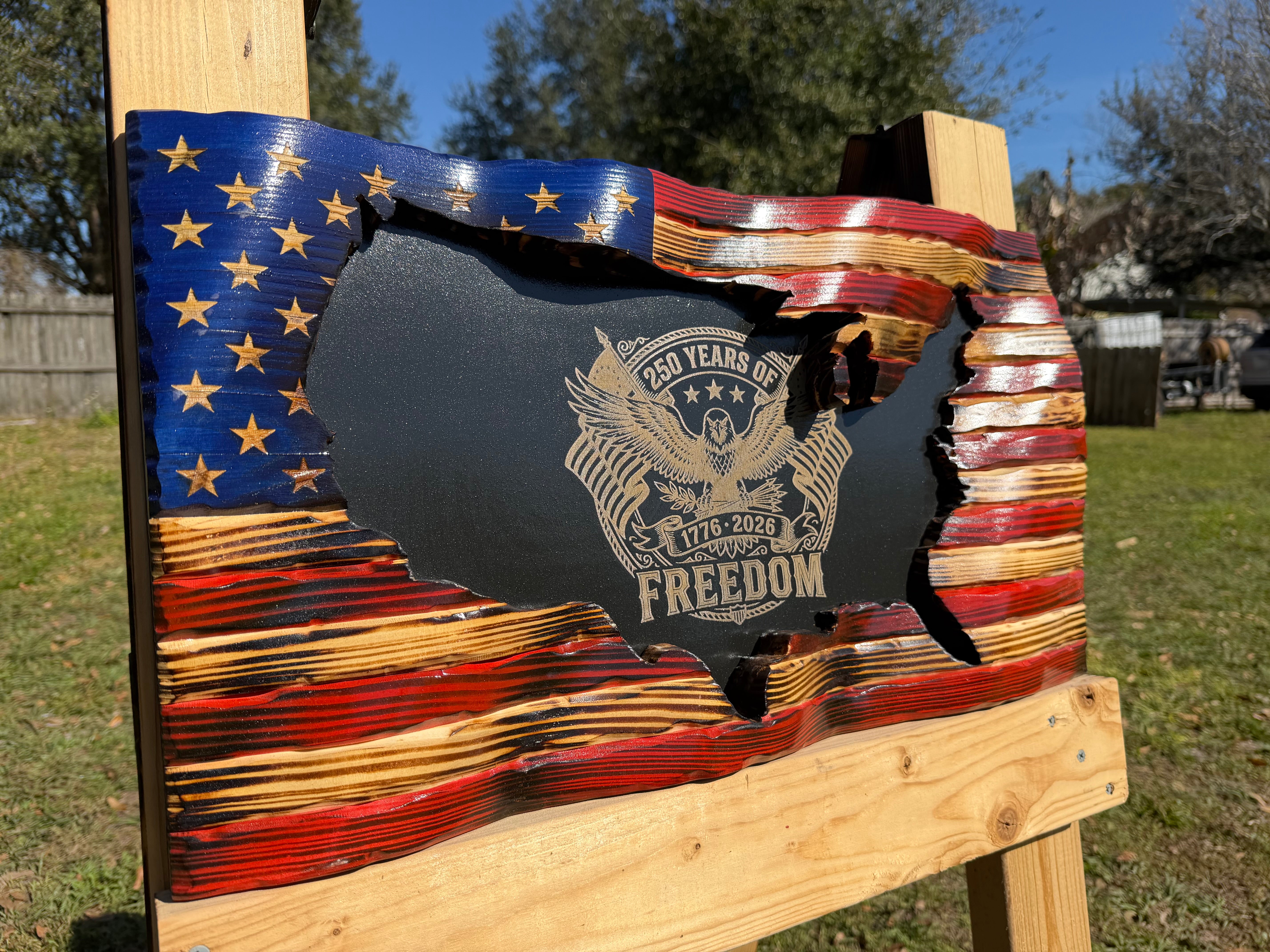 The Irish flag is subtly layered behind the stars and stripes of a wavy American flag, creating a harmonious fusion of two cultures. This piece also features a Celtic cross engraved and raised off the center of the Irish flag.