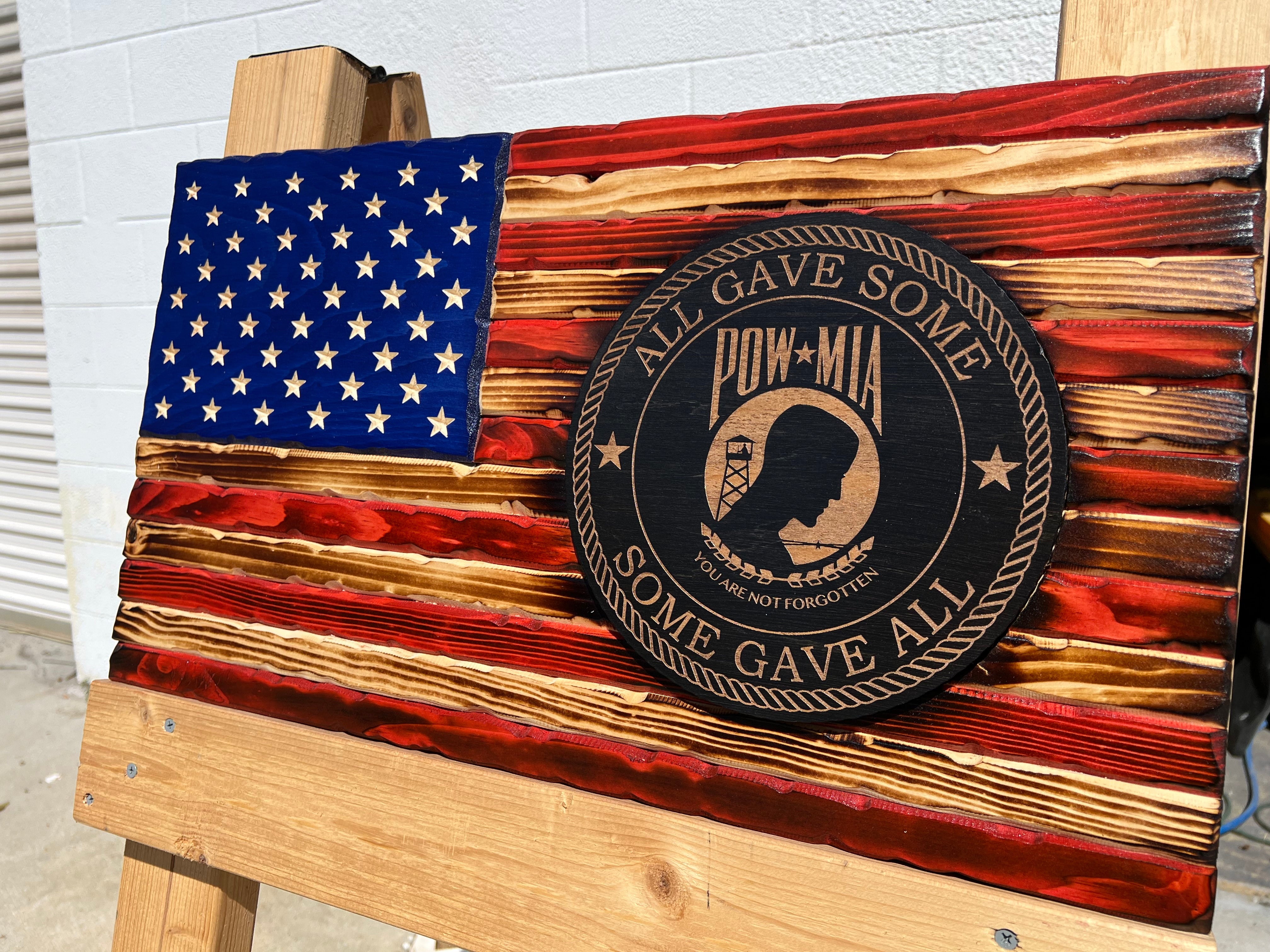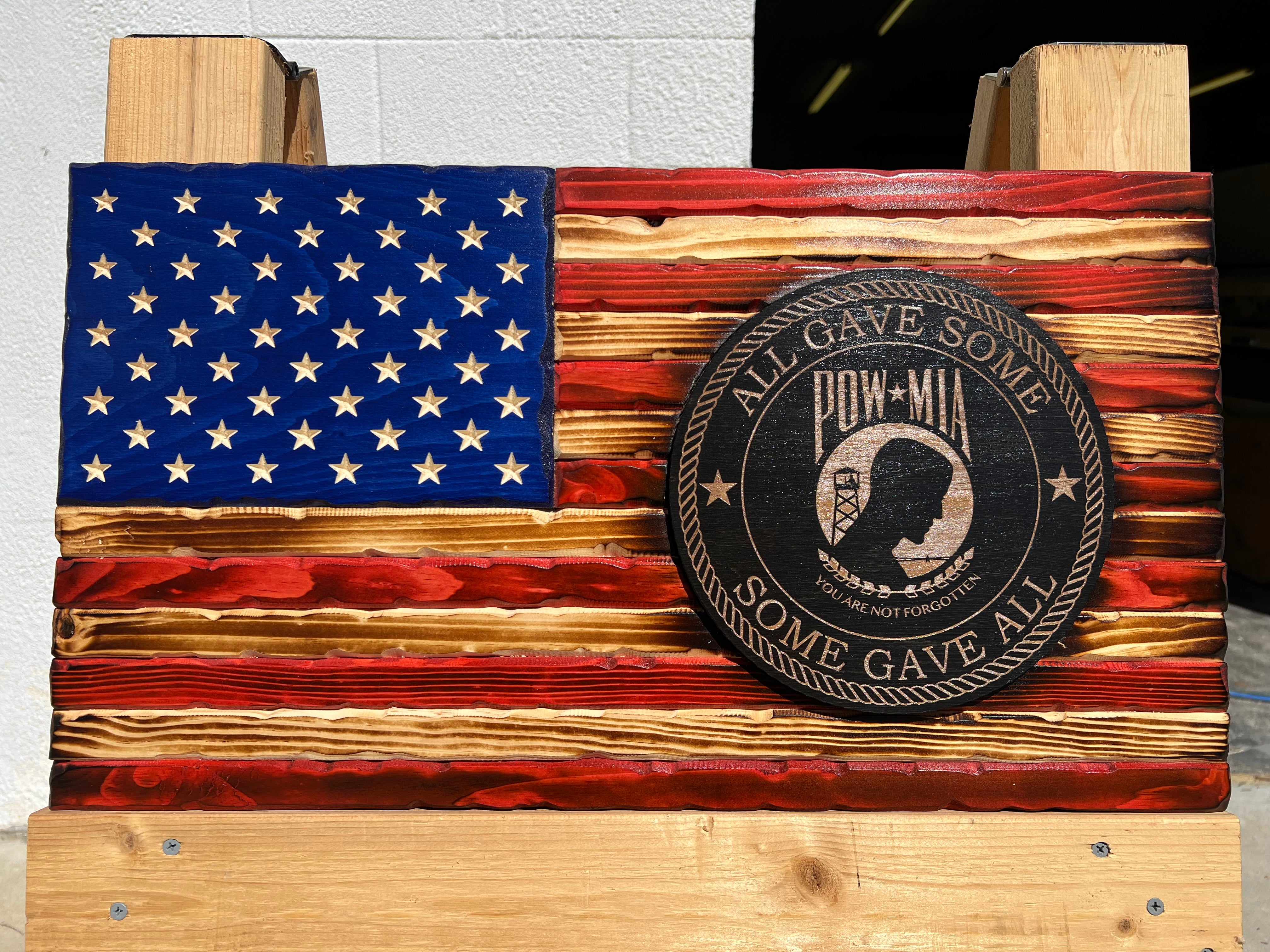 Honor the bravery and sacrifice of American prisoners of war with this Hand-Crafted Wooden American Flag.